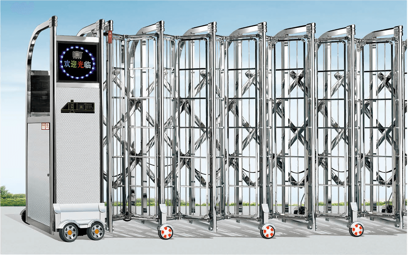 動伸縮門主要有伸縮門體、機頭、控制器三部分組成。